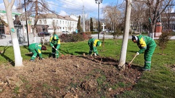 Обрезку кустов, прополку и рыхление земли специалисты провели в сквере Воссоединения и в сквере у Морвокзала, где раньше было высажено около 500 кустов.