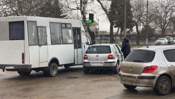 В Керчи 10 марта на пересечении улиц Кирова и Советской произошла авария. Столкнулись автомобиль марки «Volkswagen» и маршрутка, - передает Керчь.ФМ.