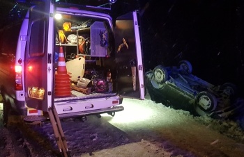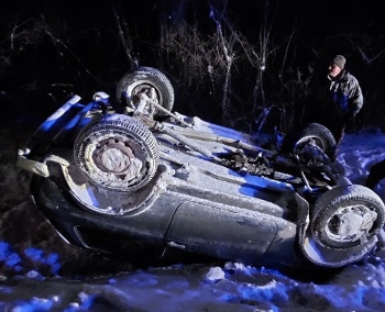 По прибытии, было установлено, что в районе с. Грушевка, водитель а/м Нива, на скользкой дороге, в темное время суток, в сложных погодных условиях, не справился с управлением, съехал на обочину и допустил опрокидывание транспортного средства с переворачиванием на крышу.