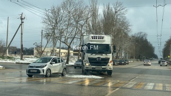 В Керчи 12 марта на улице Генерала Петрова произошла авария. Перед пешеходным переходом столкнулись автомобиль марки «КИА» и грузовик. От столкновения у легковушки вылетело заднее стекло, - передает Керчь.ФМ.