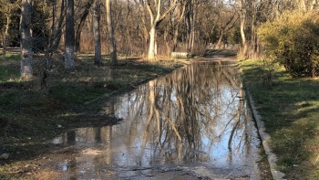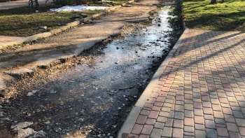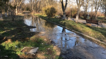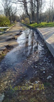 В Молодежном парке произошел прорыв водовода. Вода с не совсем приятным запахом залила пешеходные дорожки и стекает с обрыва, - передает Керчь.ФМ.
