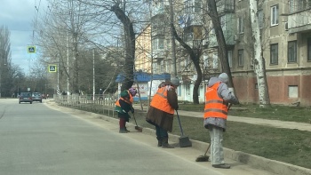 В Керчи 16 марта в городе полным ходом идет уборка перед предстоящим праздником. Коммунальщики и осужденные метут дороги на улицах Горького, Блюхера и на мосту на Партизанском, - передает Керчь.ФМ.