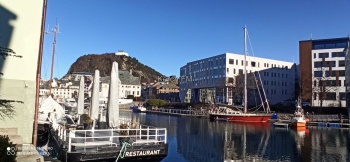 Город расположен на западной стороне острова Hareidlandet, в 23 километрах на юг от города Олесунн. Чистый ухоженный город, нигде не видно утепленных домов, а так же газовых труб (газа походу нет), 100лет назад город полностью сгорел, кроме одного дома, т. к тогда все строили из дерева, но при пожаре жители города спаслись, погибла лишь одна женщина спасавшая вещи из дома. Из города в соседние городки ходят паромчики, сюда заходят пассажирские суда. Очень много разных отельчиков, цены в них кусаются, покушать выйдет первое второе и десерт порядка 70-100 евро, при сегодняшнем курсе 7-10тыс рублей. Кошек и собак бездомных нет, все кошки бегающие по улице живут дома. Очень много афроамериканцев, тут им не надо работать, государство кормит и дает проживание. Ну вот, собственно, и все, надеюсь мой рассказ кому-то поможет уйти в рейс или просто быть спокойнее в это смутное время. Всем пока!».