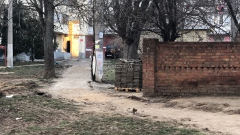 В выходные дни рабочие активно снимали здесь асфальт и бордюры, разбирали и вывозили плитку с пешеходных дорожек. К началу рабочей недели активные работы остановились. На объекте нет ни техники, ни рабочих, ни паспорта.