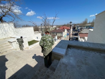 В Керчи 6 апреля Константиновскую лестницу начали приводить в порядок. Рабочие зачищают поверхности, чтобы вернуть им прежний белый вид. Работы проводят вручную с помощью шлифовальных листов и воды. Лестница в некоторых местах после зимы начала зеленеть, - передает Керчь.ФМ.