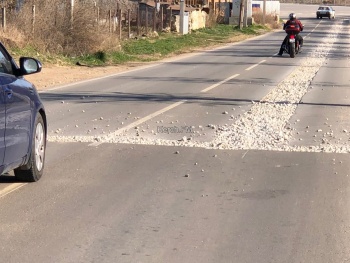 Саму траншею зарыли и засыпали крупном щебнем, который тут же развезли водители по проезжей части. Местами движение осуществляется только по встречной полосе.