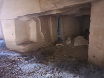 Восточная часть больше напоминает суровый быт каторжника : обожжённые стены, полумрак переходящий в абсолютную тьму, влажный холод. Эта часть знаменита событиями середины 90-х, которые еще помнят керчане. Там был убит и тяжело ранен сотрудники милиции, которые ловили в каменоломнях знаменитую на Керченском полуострове банду. О тех событиях напоминает памятник в форме большого валуна с памятной табличкой.