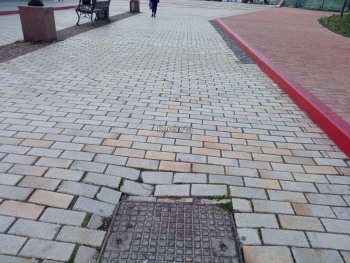«Посмотрите,  люк просел и плитка рядом тоже. А с другой стороны вообще металлическая часть торчит. И тут ждем пока провалится?», - спрашивают керчане.