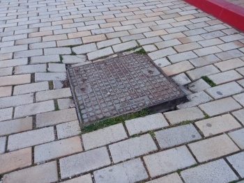 В Керчи на пешеходной дорожке в переулке Дмитрова, у церкви Иоанна Предтечи просел люк.  Об этом  Керчь.ФМ сообщили постоянные читатели