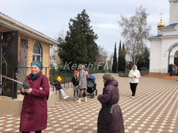 Жители и гости города с ветками вербы и другими цветами сегодня посетили церковь. Больше всего людей в церквях было с утра, к обеду число желающих несколько уменьшилось.
