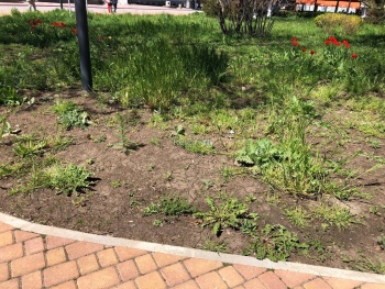 «Раз уже речь зашла про траву, которая почти колосится на набережной, то зачем далеко ходить-то. Посмотрите, что в самом сердце Керчи - на Ленинской. Раньше были клумбы, а теперь из-за травы не видно тюльпанов. И такая история не только у благоустраиваемых участков, но и на других клумбах, где о благоустройстве и речи не шло. Зимой так показательно зеленхоз работал, а теперь что? Или все задействованы на посадке трех рядов петуний?», - пишут керчане.