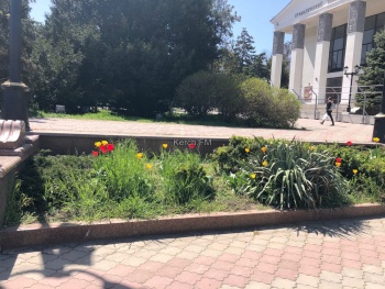 И тут трава: клумбы в центре Керчи тоже заросшие