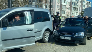 Узкий мост стал непреодолимым препятствием для автомобилистов, выезжающих на Еременко. Притерлись друг к другу Volkswagen и Hyundai, - передает Керчь.ФМ.