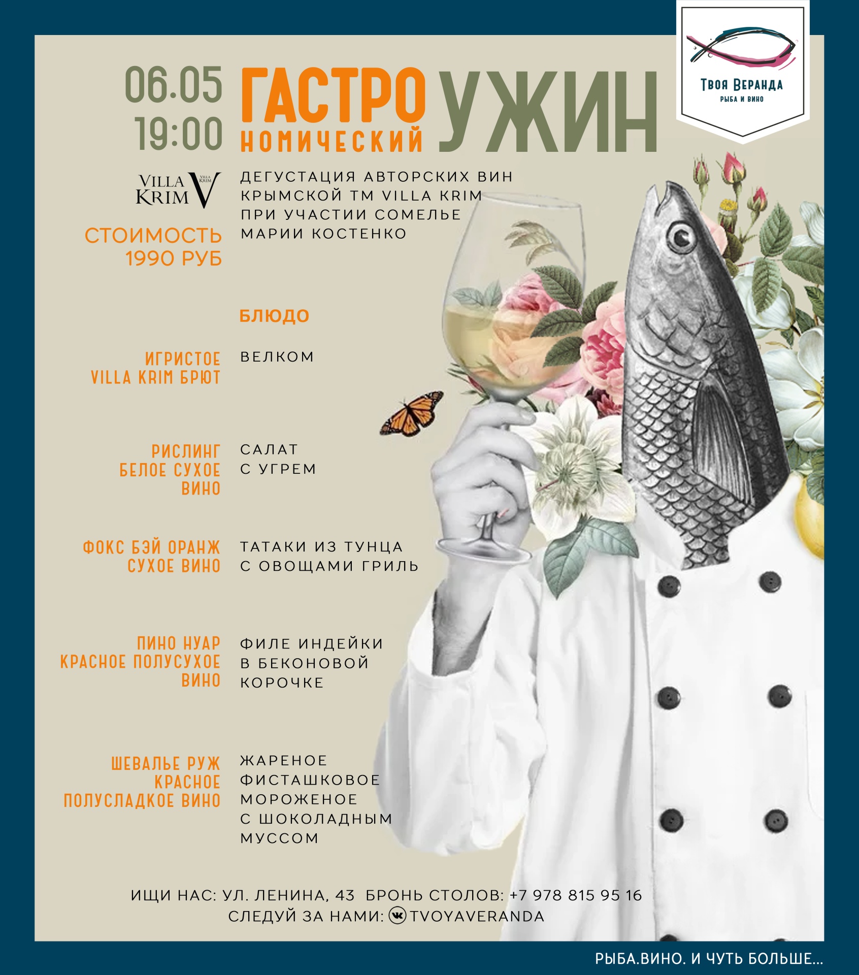 Твоя Веранда. Рыба и вино: 6 мая - начало в 19:00. Стоимость участия 1 990 руб.
