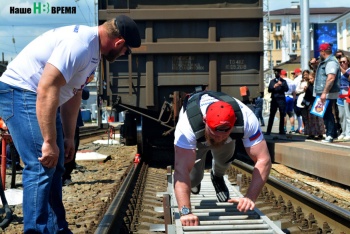 Крымский богатырь Егор Сороколетов смог протащить состав из трех вагонов общей массой 496, 5 тонны на 3 метра 70 сантиметров.Спортсмен из Керчи смог сделать это менее чем за минуту — 58, 90 с.