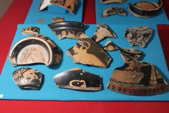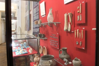 На выставке представлены удивительные экспонаты, собранные археологами за многие годы: стеклянная и краснолаковая посуда, сероглиняные светильники, монеты, терракотовые статуэтки из святилищ и замечательные солнечные часы I в. н. э. Отдельное место в экспозиции уделено Китейской археологической экспедиции.
