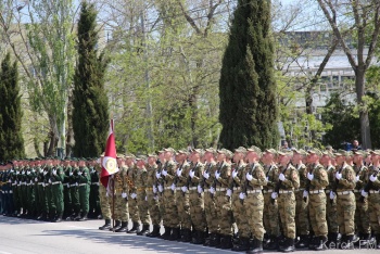 После приветствия участников парада, солдаты прошли пешим строем, проехала колонна военной техники, более 20 единиц.