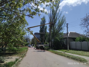 В  Керчи днем 12 мая в переулке Корабельный перекрыт сквозной проезд, - передает Керчь.ФМ.  Здесь рабочие с помощью спецтехники пилят высокие деревья.