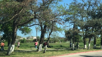 Бюджетники Керчи вышли на субботник для борьбы с травой