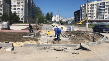 Сейчас рабочие завершают укладку тротуарной плитки. На площадках с резиновым покрытием планируют разместить игровое оборудование для детей и спортивные элементы.