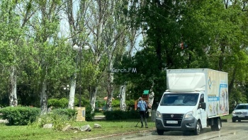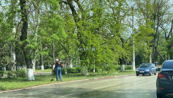 В Керчи 19 мая на улице Кирова косили траву. Работы проводили вдоль дороги, от здания администрации и в сторону сквера «Лётчиков».