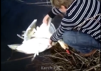 Крымчане спасли лебединую семью. Птицы запутались друг в друге. Лебедь сам подплыл к человеку и потянул свою пару. Птицы были уже совсем без сил. Видео прислали в редакцию Керчь.ФМ постоянные читатели.