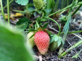 Оказалось, что диковинное растение керчанка вырастила из семечка. Рядом с пальмой прекрасно себя чувствуют маки, лунариум, и даже несколько кустов земляники.