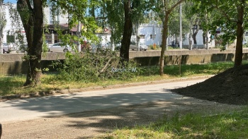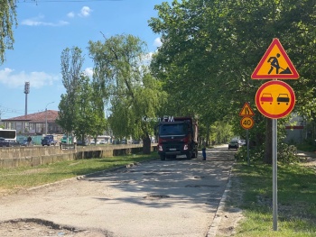 На данной дороге планируют провести ремонт. Рабочие завезли асфальтную крошку, высыпав ее прямо на проезжую часть.