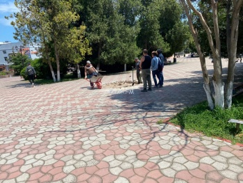 В сквере Мира разбирают тротуар