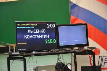 - Лысенко Константин - классическое тоеборье, в весовой категории до 105 кг, среди мужчин занял 5 место, приседания 167, 5 кг, жим лежа 125 кг, становая тяга 217, 5 кг;