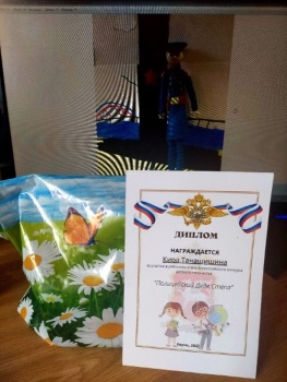 Также не осталась без внимания поделка 9-летней Киры Танащишиной, ученицы 3-А класса ГБОУ «Керченский учебно-воспитательный комплекс-интернат - лицей искусств». Так как Кира заболела и не смогла присутствовать на награждении, диплом за участие в конкурсе и сладкий подарок будут переданы ей лично.