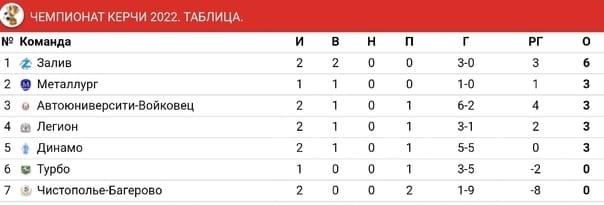 ТУРНИРНОЕ ПОЛОЖЕНИЕ КОМАНД ПОСЛЕ ДВУХ ТУРОВ.