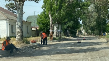 В Керчи 8 июня на улице Комарова работало всего три рабочих. Видимых изменений с последнего посещения данной улицы журналистами Керчь.ФМ 31 мая нет. Все также открыты люки, установлены бордюры и снято старое асфальтовое покрытие.