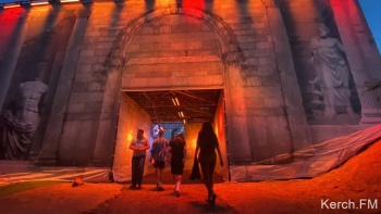 В этом году над декорациями постарались, керчане могли наблюдать и световое шоу, и водное. А вход охраняют два грифона