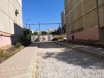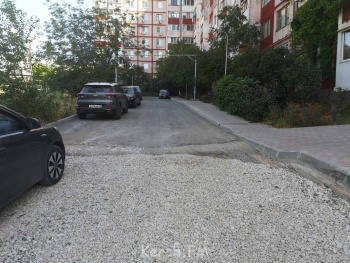 У жителей двора была надежда на то, что такое отношение к ним завершится после того, как завершат горе-благоустройство. Но, нет. Неделю назад местный подрядчик «Крым-Донбасс» активно принялся за асфальтирование двора. Каждый день администрация в соцсетях рапортовала сколько и где во дворе чего положили. Но подрядчика «кидают» везде, и, как итог, двор асфальтирован «клаптиками», но один из въездов перекрыт.