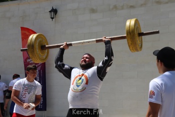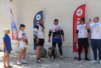 Самым зрелищным стали соревнования силачей. На керченской земле сегодня зафиксировали рекорд в поднятии камня. Министр спорта Крыма Ольга Торубарова участвовала в соревнованиях силачей в роли девушки - держателя цепи.