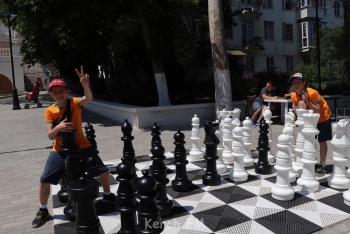 На празднике можно было попробовать себя в роли настоящих спортсменов: поиграть на время в шахматы и шашки, померить силы в армрестлинге, попробовать поднять 80-киллограмовый шарик или штангу.