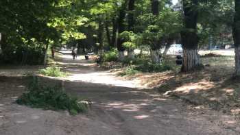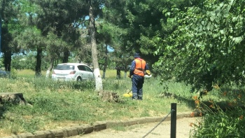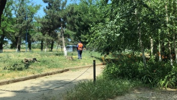 В Керчи на ул. Орджоникидзе с утра 20 июня приводят в порядок обочины дорог, - передает Керчь.ФМ.   Здесь косят траву и сразу складывают в мешки, обрезают поросль и ветки деревьев.