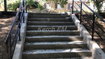 Так, во дворе появился новый асфальт, уложена плитка. Также здесь установлены металлические конструкции вдоль всего дома. Рабочие переделали несколько лестниц, которые ведут к бельевой площадке и месту, где до ремонта была детская площадка. У лесниц установили поручни, на ступенях также приступили к укладке плитки.