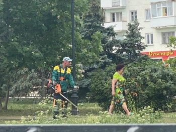 В Керчи 21 июня в сквере Воссоединения проводят покос травы. На участке работало около 10 сотрудников, - передает Керчь.ФМ.