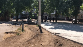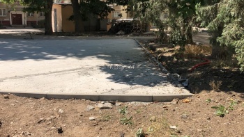 Так, рабочие завершили установку бордюров и укладку плитки у жилых домов. Бетоном залили и место, где располагалась бывшая детская площадка. Также началось обустройство пешеходных дорожек.