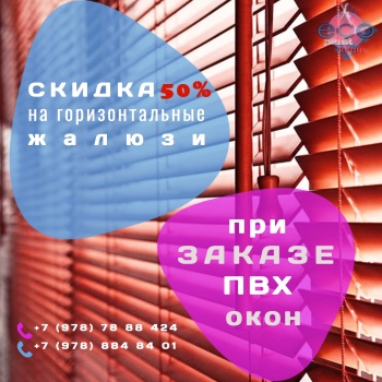А если ваши окна выходят на солнечную сторону не упустите возможность воспользоваться скидкой 50% на горизонтальные жалюзи!