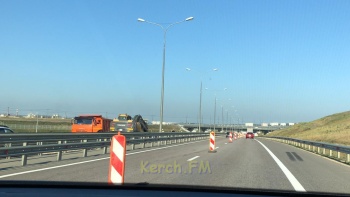 На автоподходах к Крымскому мосту организовано реверсивное движение. Со стороны моста в сторону Керчи ведут дорожные работы, - передает Керчь.ФМ.