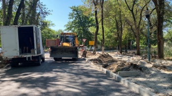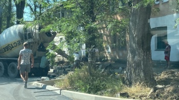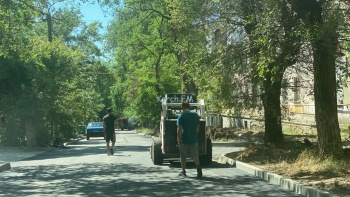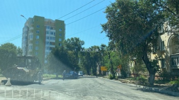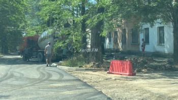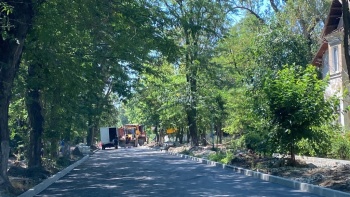 В Керчи 1 июля на улице Славы продолжаются дорожные работы. Рабочие закатали дорогу в два слоя нового асфальта, осталось заасфальтировать съезды во дворы.