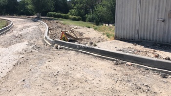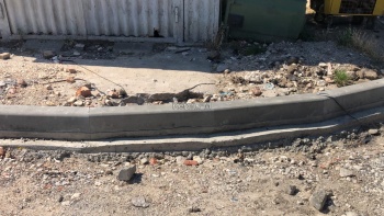 Ранее здесь сняли старый слой асфальта и того, что от него осталось. Установку новых бордюров завершили.