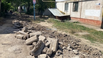 Ранее рабочие активно ввели работы и демонтировали старые бордюры, разрушив двор. Пройти по дороге во дворе людям тяжело, а для автомобилей проезд вообще не возможен.