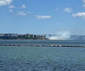 Дым было видно на городской набережной. Отметим, что это второй пожар в Керчи за сегодня. Ранее, горел сухостой на мысе Карантинный, около городища Мирмекий.