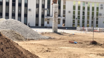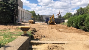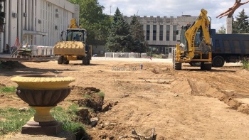 Так, техника утрамбовывает щебень - совсем скоро керчане не будут обходить площадь по проезжей части, чтобы не быть в пыли или грязи.