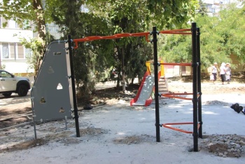 По информации главы администрации, сегодня рабочие производят во дворе монтаж детской площадки, устанавливают горку, качели. Также игровую зону дополнят карусель и песочница.