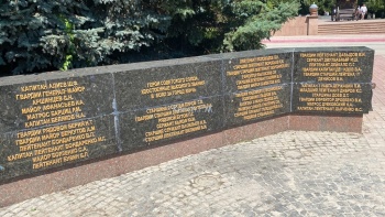 В Сквере Славы с Вечного огня пропали несколько букв. Не хватает букв «Ф» и «О». Кроме этого, на стеле с именами героев также пропали несколько букв в фамилиях, - передает Керчь.ФМ.